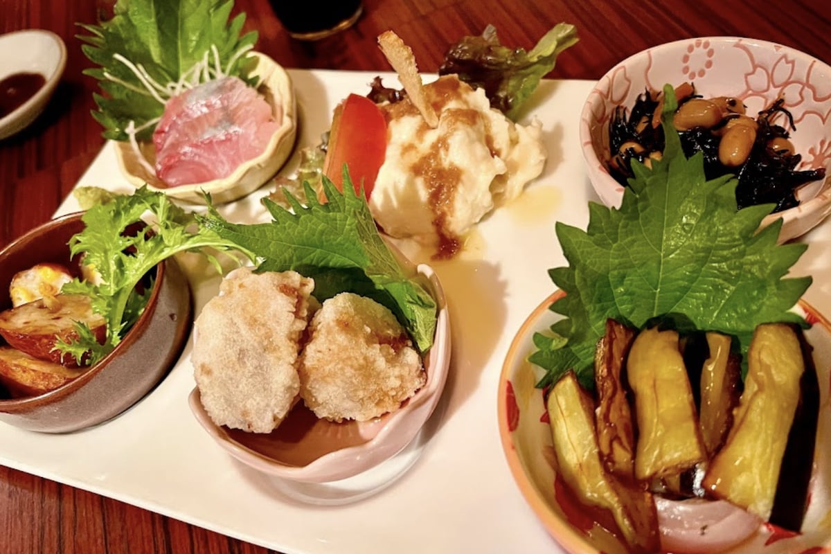 A small vegan and GF “takoyaki” izakaya using okara (soy pulp) with a self-serve drink system. Dine-in and takeout are available.