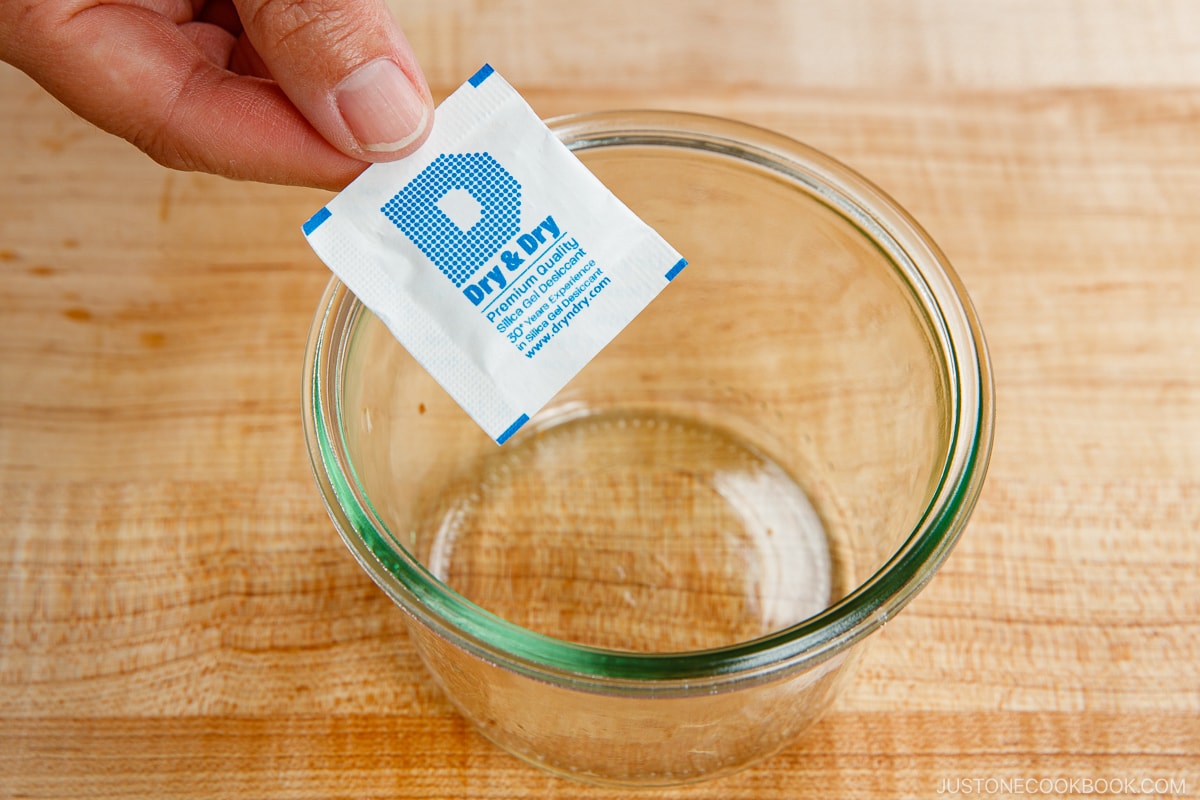 - To an airtight glass jar, add one Food Safe Silica Gel Desiccant Packet to the bottom. Then, add the cooled garlic chips. Close the lid tightly. Your Garlic Chips are now ready to use.