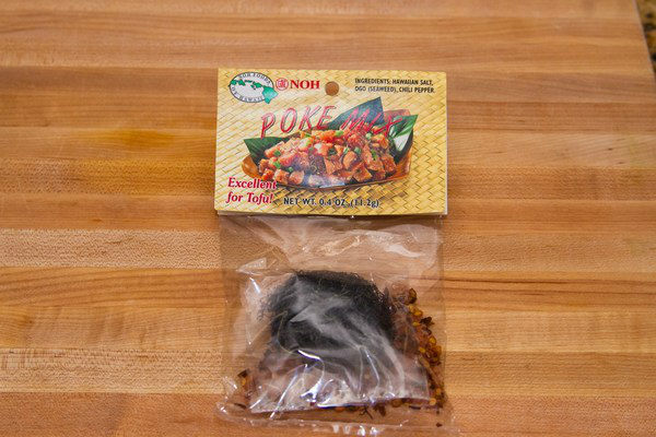 I bought this Poke Mix, which includes Hawaiian salt, ogo (a type of seaweed), sesame seed, and chili pepper, and used the salt and ogo. You can purchase it on Amazon or Japanese grocery stores.